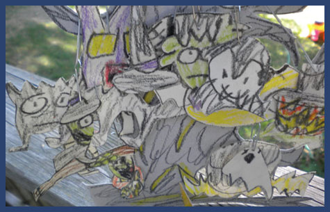 Wow- he has a good sense of proportions for a five year old! The Werewolf and Slappy drawings are impressive to me- they seem to be much better than someone his age would normally be drawing. Keep it up Owen- maybe someday we will be seeing your movie posters in the theater lobbies!